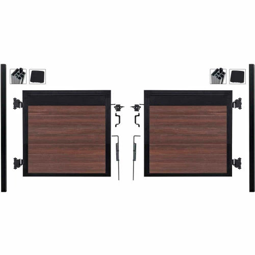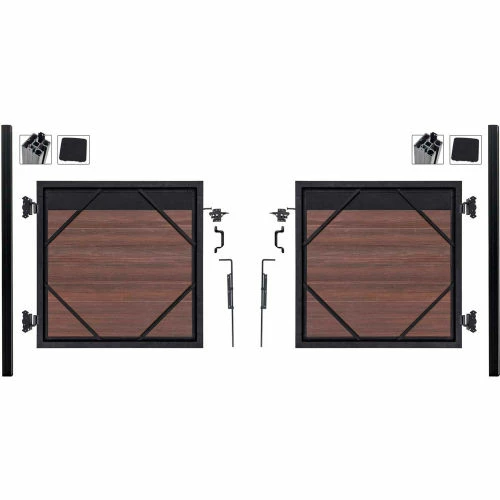 (2) Adjustable Gate frame kits with Infill for Double drive applications, up to 10ft wide. All Hardware Included. Heavy Duty Posts Included. Beauty of wood without the maintenance, never needs paint or stain. Mixed materials, aluminum and composites, both low maintenance with UV protection. All-purpose, strong, lightweight, and rot free aluminum framework and posts. Locking tongue & groove composite and aluminum boards mix and match. Composite color families are multi-chromatic with heavily embossed grain. Composite is made of recycled wood and polyethylene. Gate kits sold separately.Manufactured in the USA and Canada. Installation video and PDF available.