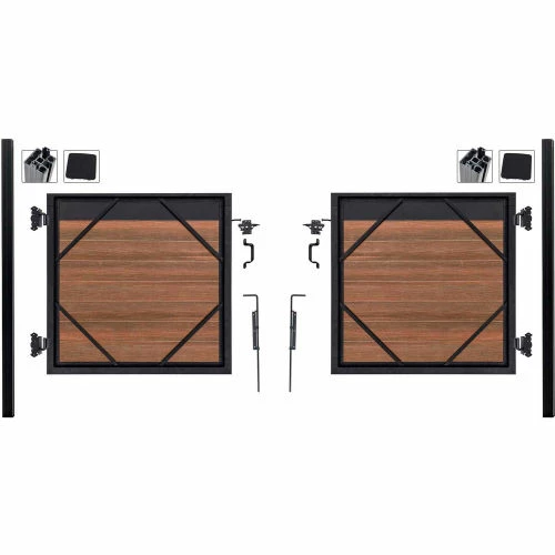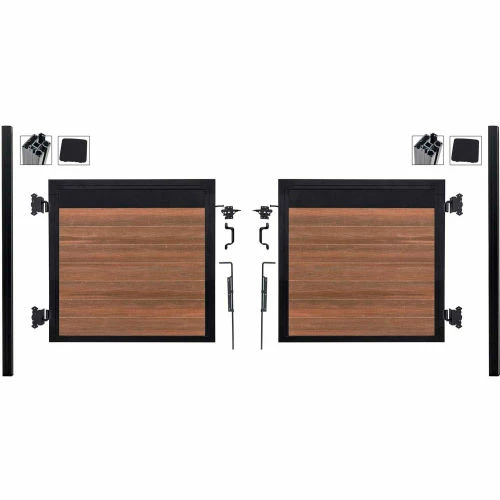 (2) Adjustable Gate frame kits with Infill for Double drive applications, up to 10ft wide. All Hardware Included. Heavy Duty Posts Included. Beauty of wood without the maintenance, never needs paint or stain. Mixed materials, aluminum and composites, both low maintenance with UV protection. All-purpose, strong, lightweight, and rot free aluminum framework and posts. Locking tongue & groove composite and aluminum boards mix and match. Composite color families are multi-chromatic with heavily embossed grain. Composite is made of recycled wood and polyethylene. Gate kits sold separately. Manufactured in the USA and Canada. Installation video and PDF available.