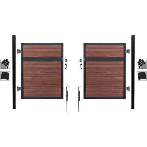 (2) Adjustable Gate frame kits with Infill for Double drive applications, up to 10ft wide. All Hardware Included. Heavy Duty Posts Included. Beauty of wood without the maintenance, never needs paint or stain. Mixed materials, aluminum and composites, both low maintenance with UV protection. All-purpose, strong, lightweight, and rot free aluminum framework and posts. Locking tongue & groove composite and aluminum boards mix and match. Composite color families are multi-chromatic with heavily embossed grain. Composite is made of recycled wood and polyethylene. Gate kits sold separately. Manufactured in the USA and Canada. Installation video and PDF available.
