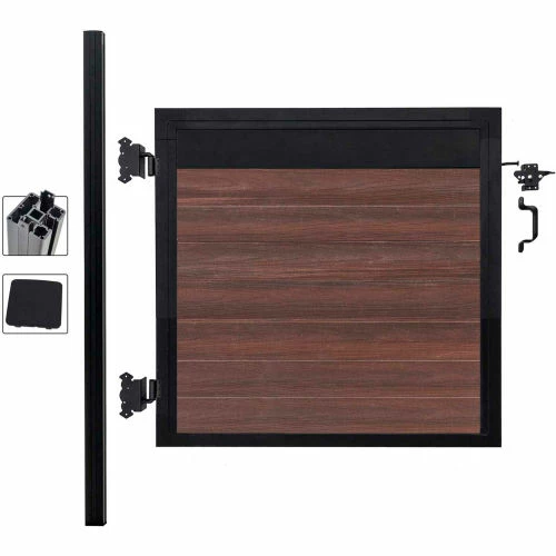 Adjustable Gate frame kit with Infill for 36″ to 60″ Wide opening. All Hardware Included. Heavy Duty Posts Included. Beauty of wood without the maintenance, never needs paint or stain. Mixed materials, aluminum and composites, both low maintenance with UV protection. All-purpose, strong, lightweight, and rot free aluminum framework and posts. Locking tongue & groove composite and aluminum boards mix and match. Composite color families are multi-chromatic with heavily embossed grain. Composite is made of recycled wood and polyethylene. Gate kits sold separately.Manufactured in the USA and Canada. Installation video and PDF available.