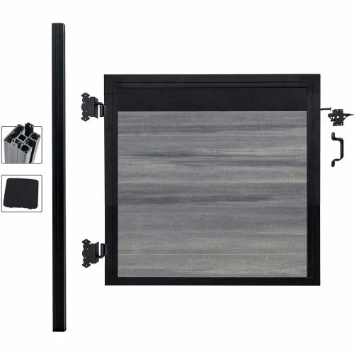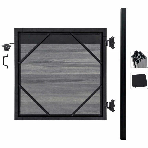 Adjustable Gate frame kit with Infill for 36″ to 60″ Wide opening. All Hardware Included. Heavy Duty Posts Included. Beauty of wood without the maintenance, never needs paint or stain. Mixed materials, aluminum and composites, both low maintenance with UV protection. All-purpose, strong, lightweight, and rot free aluminum framework and posts. Locking tongue & groove composite and aluminum boards mix and match. Composite color families are multi-chromatic with heavily embossed grain. Composite is made of recycled wood and polyethylene. Gate kits sold separately.Manufactured in the USA and Canada. Installation video and PDF available.