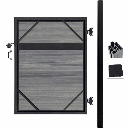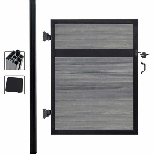 Adjustable Gate frame kit with Infill for 36″ to 60″ Wide opening. All Hardware Included. Heavy Duty Posts Included. Beauty of wood without the maintenance, never needs paint or stain. Mixed materials, aluminum and composites, both low maintenance with UV protection. All-purpose, strong, lightweight, and rot free aluminum framework and posts. Locking tongue & groove composite and aluminum boards mix and match. Composite color families are multi-chromatic with heavily embossed grain. Composite is made of recycled wood and polyethylene. Gate kits sold separately. Manufactured in the USA and Canada. Installation video and PDF available.