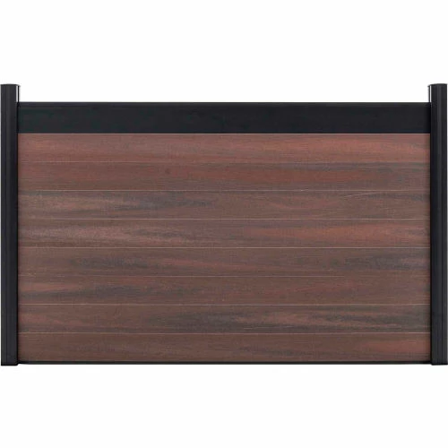 Beauty of wood without the maintenance, never needs paint or stain. Mixed materials, aluminum and composites, both low maintenance with UV protection. All-purpose, strong, lightweight, and rot free aluminum framework and posts. Locking tongue & groove composite and aluminum boards mix and match. Composite color families are multi-chromatic with heavily embossed grain. Composite is made of recycled wood and polyethylene. Gate kits sold separately. Manufactured in the USA and Canada. Installation video and PDF available.