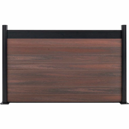 Beauty of wood without the maintenance, never needs paint or stain. Mixed materials, aluminum and composites, both low maintenance with UV protection. All-purpose, strong, lightweight, and rot free aluminum framework and posts. Locking tongue & groove composite and aluminum boards mix and match. Composite color families are multi-chromatic with heavily embossed grain. Composite is made of recycled wood and polyethylene. Gate kits sold separately. Manufactured in the USA and Canada. Installation video and PDF available.