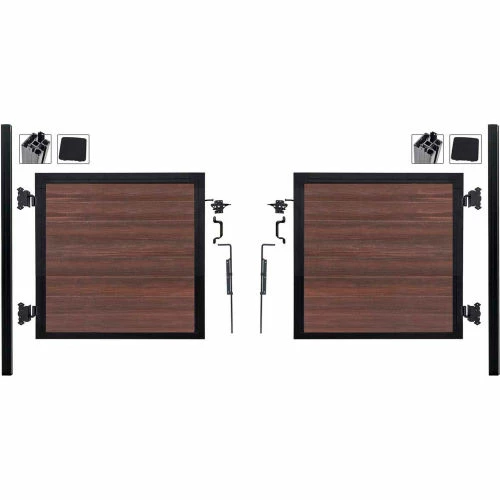 (2) Adjustable Gate frame kits with Infill for Double drive applications, up to 10ft wide. All Hardware Included. Heavy Duty Posts Included. Beauty of wood without the maintenance, never needs paint or stain. Mixed materials, aluminum and composites, both low maintenance with UV protection. All-purpose, strong, lightweight, and rot free aluminum framework and posts. Locking tongue & groove composite and aluminum boards mix and match. Composite color families are multi-chromatic with heavily embossed grain. Composite is made of recycled wood and polyethylene. Gate kits sold separately.Manufactured in the USA and Canada. Installation video and PDF available.