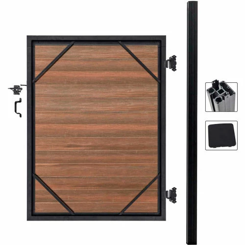 Adjustable Gate frame kit with Infill for 36″ to 60″ Wide opening. All Hardware Included. Heavy Duty Posts Included. Beauty of wood without the maintenance, never needs paint or stain. Mixed materials, aluminum and composites, both low maintenance with UV protection. All-purpose, strong, lightweight, and rot free aluminum framework and posts. Locking tongue & groove composite and aluminum boards mix and match. Composite color families are multi-chromatic with heavily embossed grain. Composite is made of recycled wood and polyethylene. Gate kits sold separately. Manufactured in the USA and Canada. Installation video and PDF available.