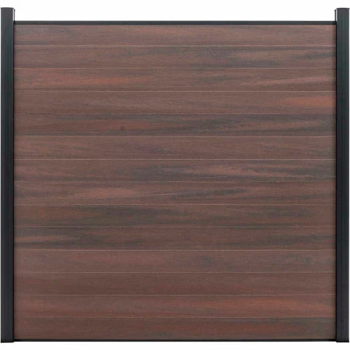Beauty of wood without the maintenance, never needs paint or stain. Mixed materials, aluminum and composites, both low maintenance with UV protection. All-purpose, strong, lightweight, and rot free aluminum framework and posts. Locking tongue & groove composite and aluminum boards mix and match. Composite color families are multi-chromatic with heavily embossed grain. Composite is made of recycled wood and polyethylene. Gate kits sold separately. Manufactured in the USA and Canada. Installation video and PDF available.