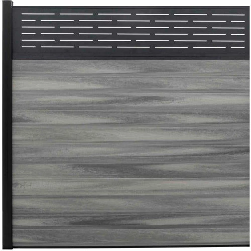 Beauty of wood without the maintenance, never needs paint or stain. Mixed materials, aluminum and composites, both low maintenance with UV protection. All-purpose, strong, lightweight, and rot free aluminum framework and posts. Locking tongue & groove composite and aluminum boards mix and match. Composite color families are multi-chromatic with heavily embossed grain. Composite is made of recycled wood and polyethylene. Gate kits sold separately.Manufactured in the USA and Canada. Installation video and PDF available