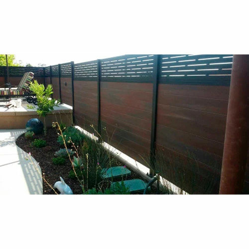Beauty of wood without the maintenance, never needs paint or stain. Mixed materials, aluminum and composites, both low maintenance with UV protection. All-purpose, strong, lightweight, and rot free aluminum framework and posts. Locking tongue & groove composite and aluminum boards mix and match. Composite color families are multi-chromatic with heavily embossed grain. Composite is made of recycled wood and polyethylene. Gate kits sold separately. Manufactured in the USA and Canada. Installation video and PDF available.